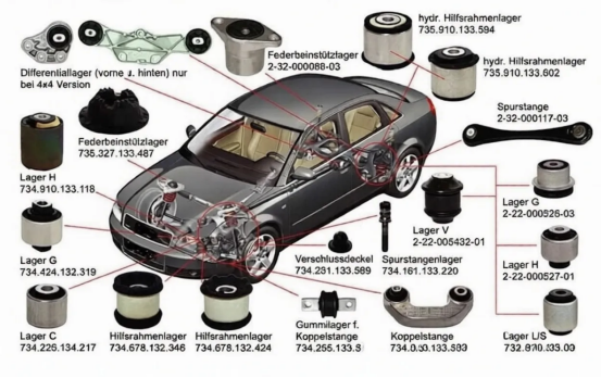 1. Süspansiyon Sistemi:Süspansiyondaki kauçuk burçlar bileşenleri bağlamaya, darbeleri emmeye ve hassas hizalamayı korumaya hizmet ederek hem aracın yol tutuşunu hem de sürüş konforunu artırır.