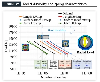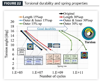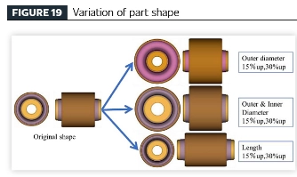 [Yorulma Analizi Teknolojisi Yoluyla Verimli Bir Araç Ürün Tasarım Süreci Oluşturulması] Titreşimi yalıtan kauçuk bileşenler için önerilen yorulma analizi tekniği uygulanarak, geometrik varyasyon (kauçuk hacmi) ile dayanıklılık performansı arasındaki ilişkiyi araştırmak amacıyla aynı malzemeden yapılmış bileşenler üzerinde parametrik bir çalışma yürütüldü. Bileşen geometrisi, aşağıdakileri içeren modellenmiş varyasyonlarla orijinal parça tasarımından türetilmiştir: