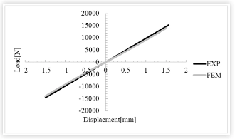 Burç sertlik eğrisi (kuvvet-yer değiştirme eğrisi) deneysel sonuçlarla karşılaştırılarak oluşturulan FEM modelinin geçerliliği kanıtlanır. Şekilden görülebileceği gibi: malzeme test numunelerinden belirlenen hiperelastik parametreler kullanılarak yapılan analiz, yük-yer değiştirme diyagramında deneysel ve analitik sonuçlar arasında iyi bir tutarlılık olduğunu göstermektedir.